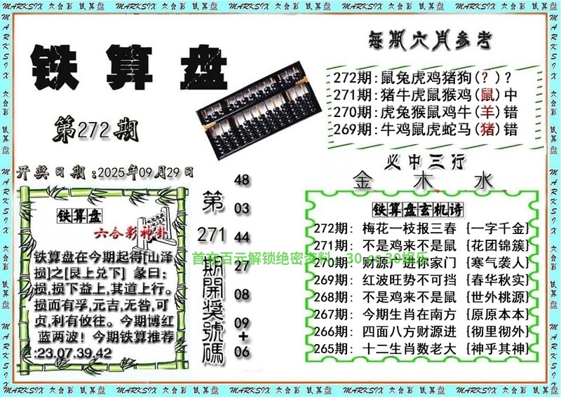 272期:三季中特❤️【冬夏秋】开:马36准 |