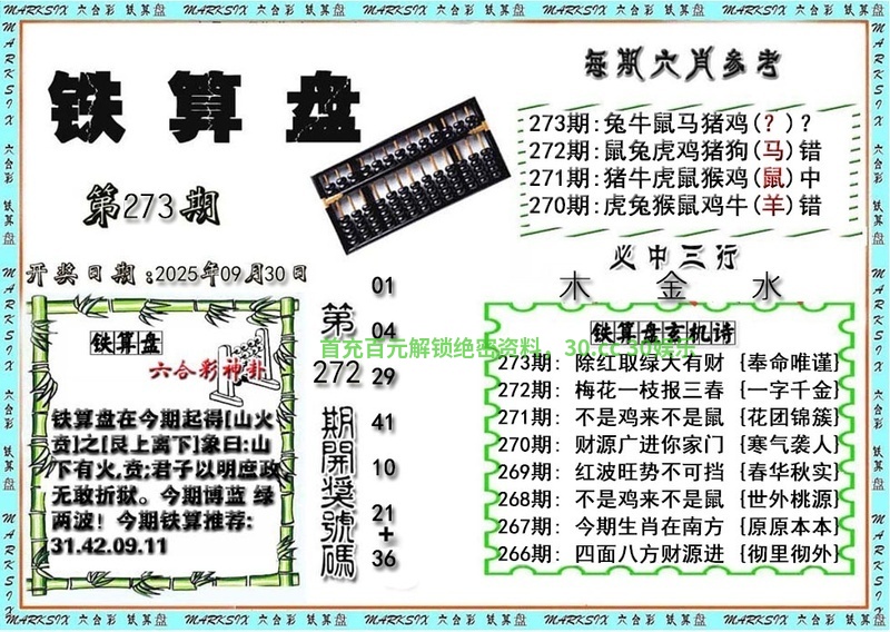 273期:三季中特❤️【秋春夏】开:虎04准 |