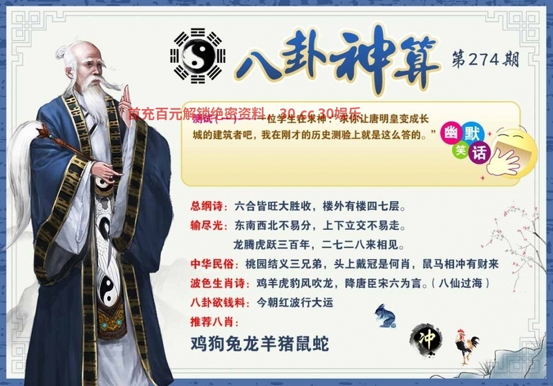 274期:绝杀二肖【鸡猪】开:狗44准 |