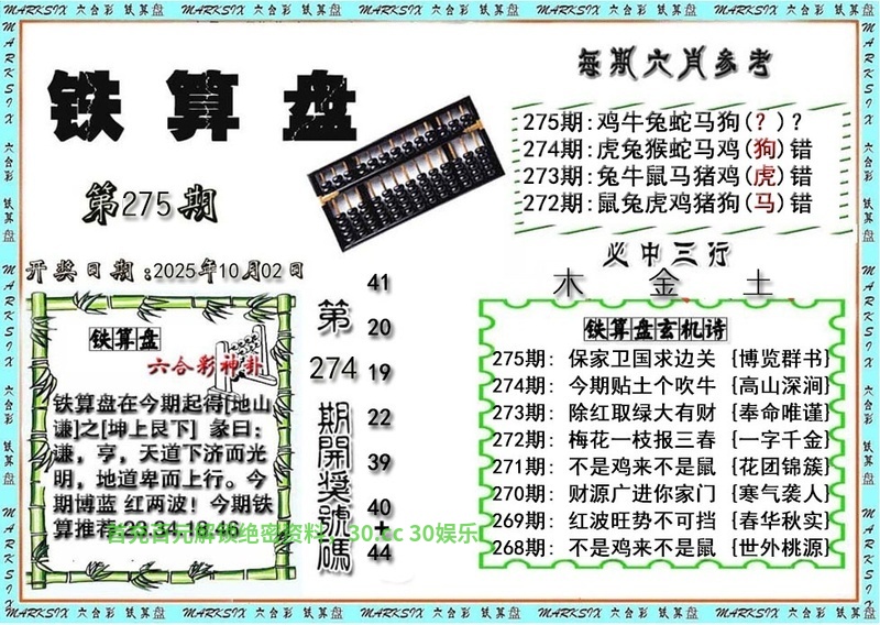 275期:绝杀二肖【马羊】开:鸡45准 |