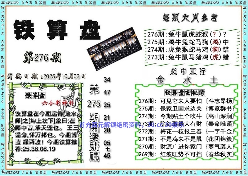 275期:三季中特❤️【冬秋春】开:鸡45准 |